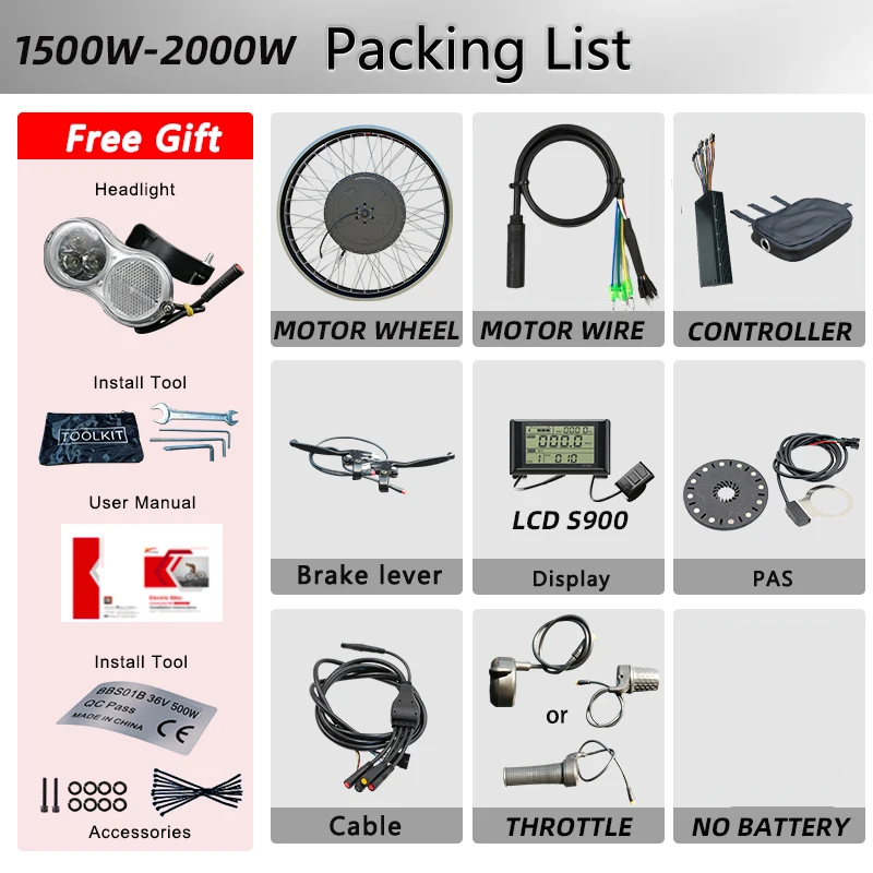 - ebike kit conversion kit type 1: 48v 1500w 2000w brushless gearless